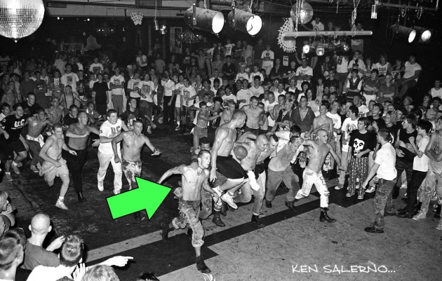 IE: Ken Salerno took a photo of you from the old City Gardens club in Trenton, NJ and in it you are literally smack dab in the middle of this crazy scene with all these skinheads going off. Please tell us more about this show and what you remember about it as well as what was going on when the photo was taken.